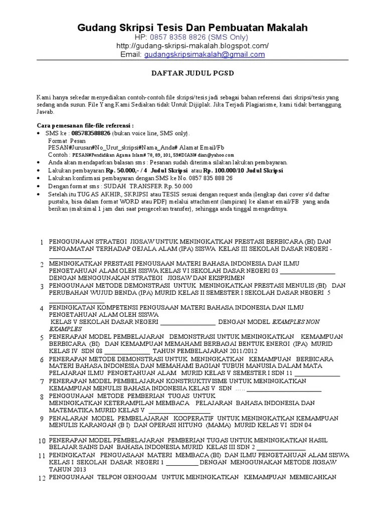for "Contoh Tesis Pendidikan Sd / Jasa Pembuatan Skripsi Dan Tesis 0852 25 88 77 47 Wa"